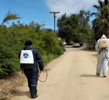 En el interior, se utiliza la fumigación UVL, nebulizadores de ultra bajo volumen. En el exterior, se utiliza la fumigación con pulverizadora.